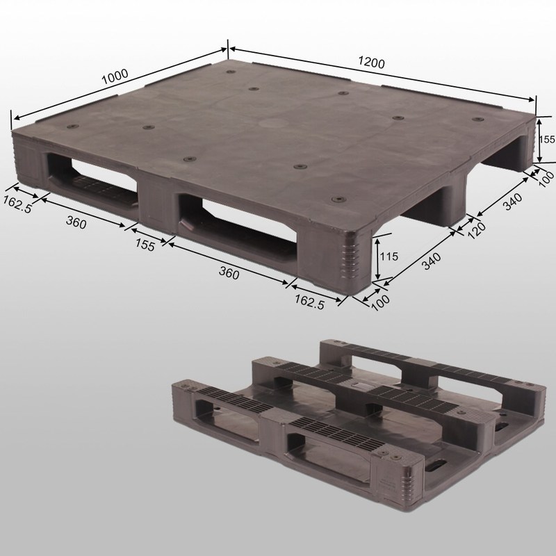 Huading 3-Runners gesloten dek 1200x1000mm plastic pallet met staal