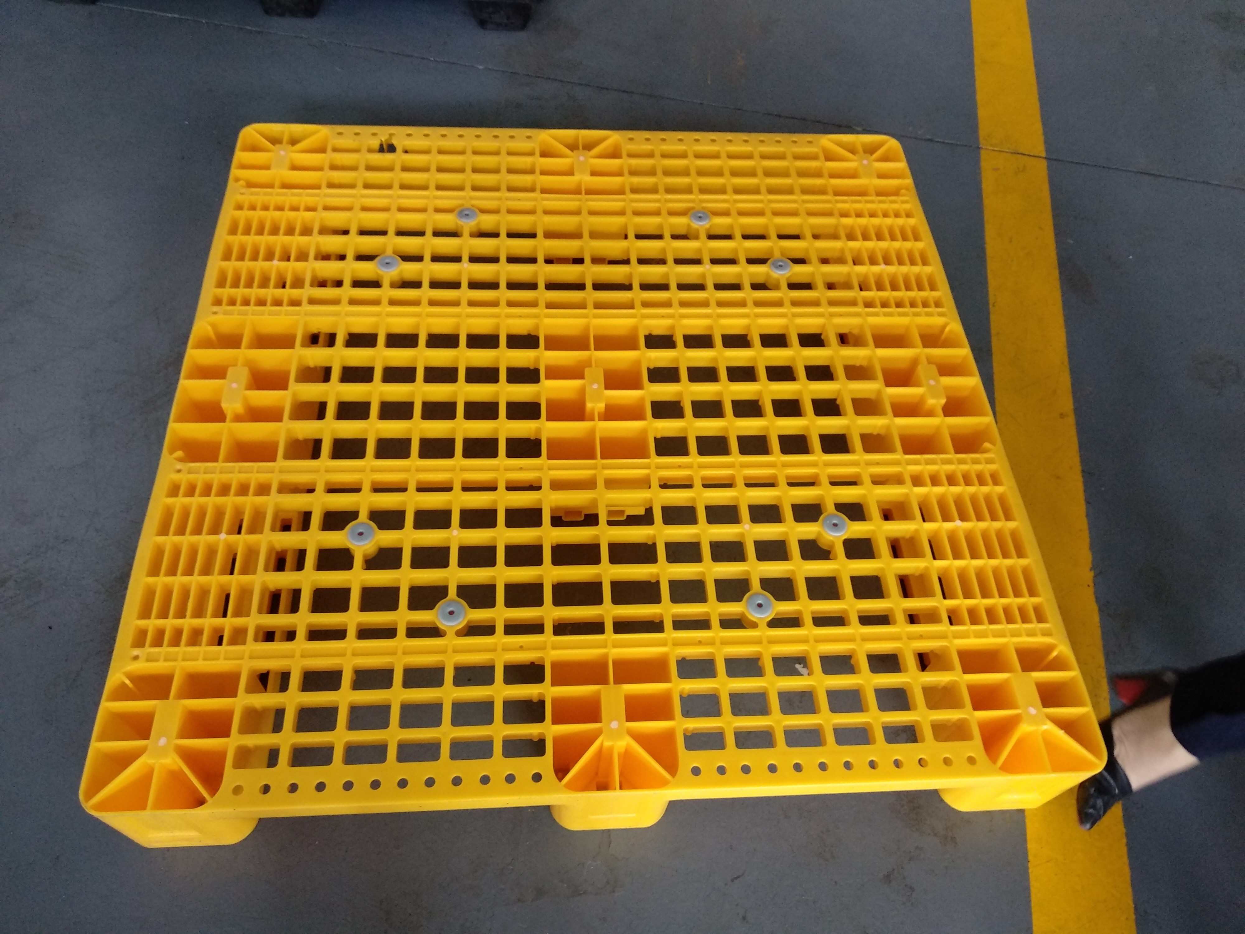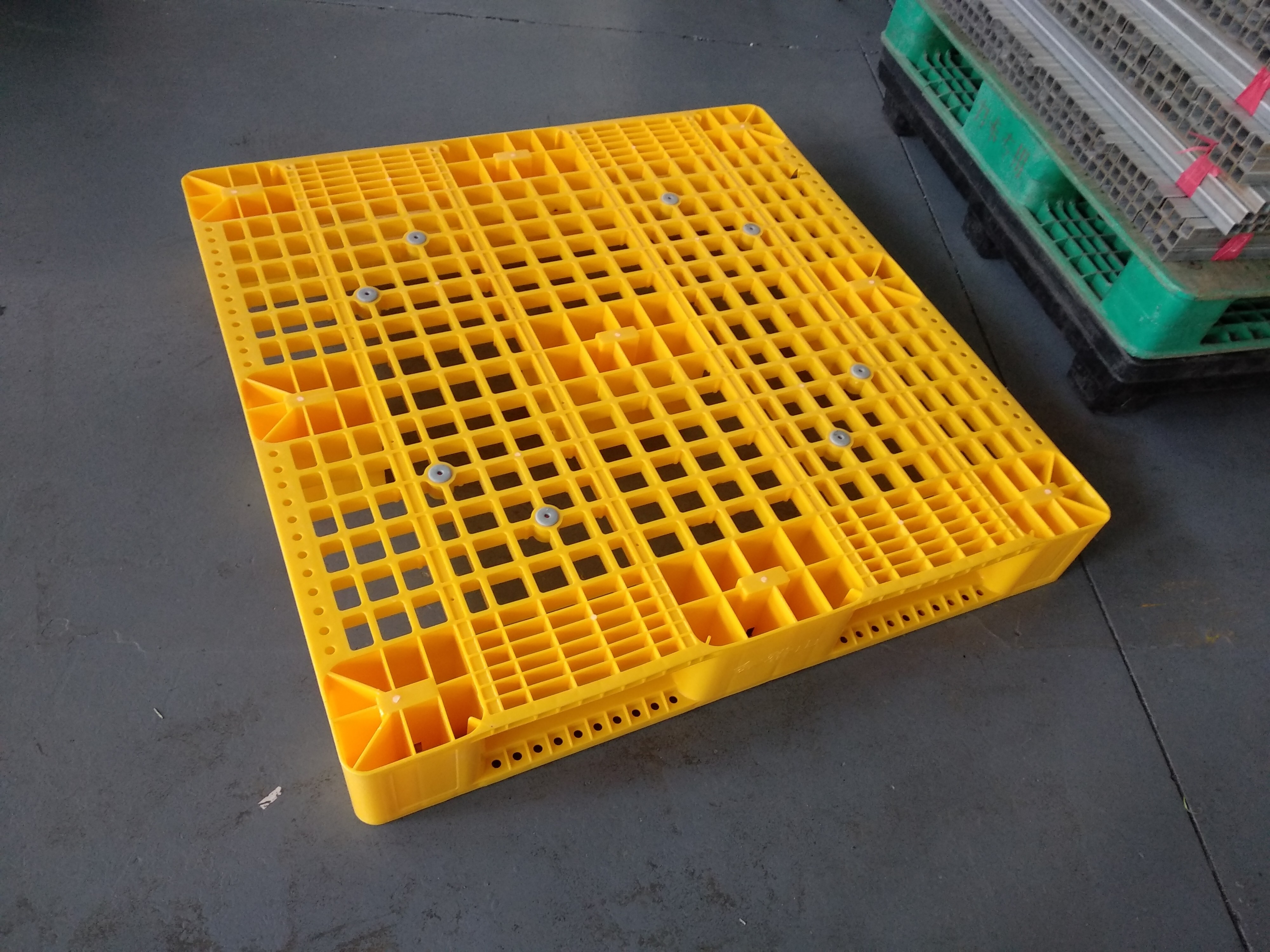Stijl: | Eén gezicht | Naam van het product: | 1140x1140 mesh deck racking plastic pallet met 3 skids |