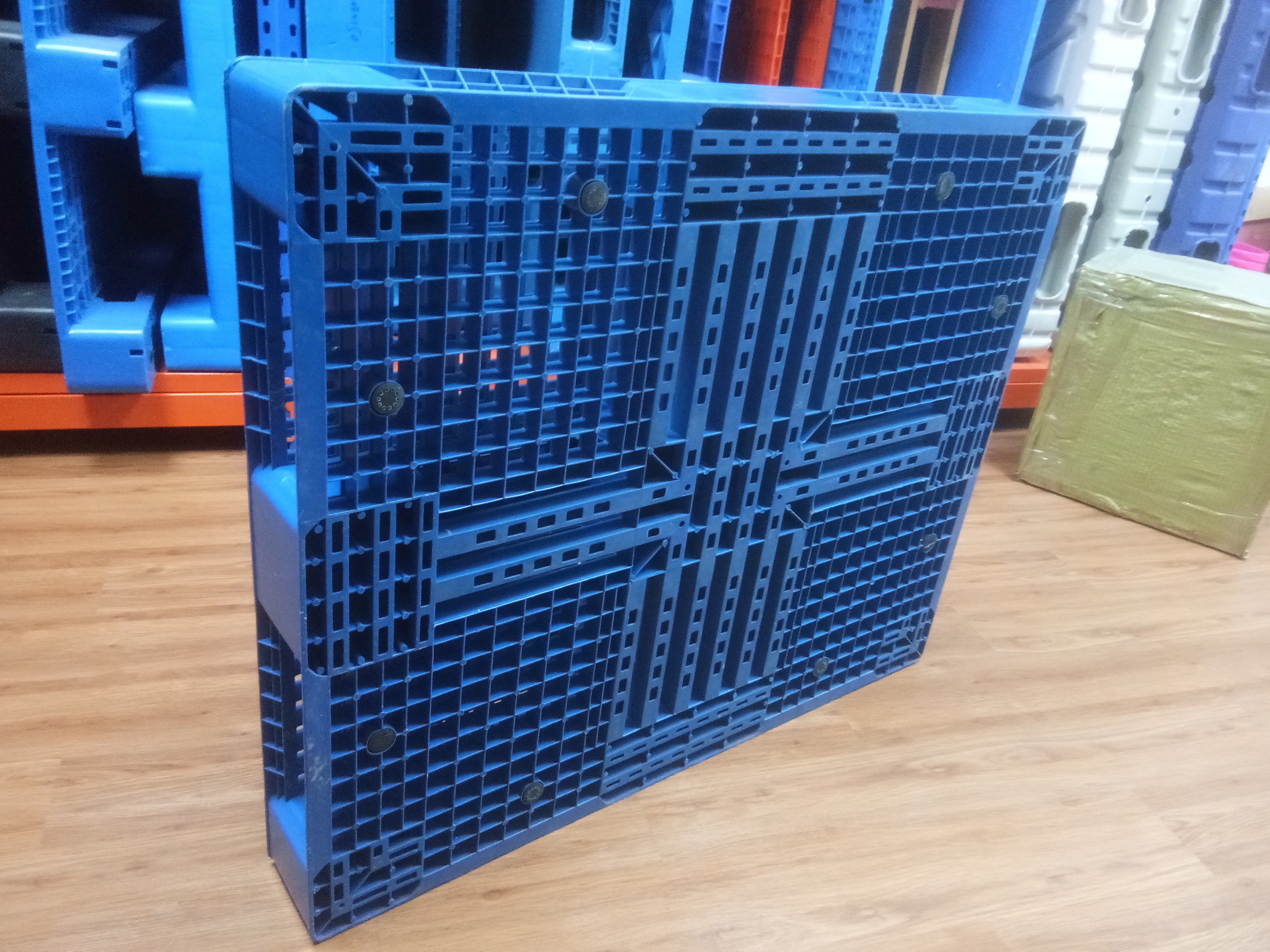 1) Ingesloten antidraairubber 2) milieuvriendelijk, duurzaam, veilig, hygiënisch, geen termieten, geen onderhoud 3) Plastic pallets bieden een economisch alternatief voor houten pallets 4) Recyclebaar en wasbaar 5) Certificaten: ISO 9001, ISO 14001, ISO/TS16949 en certificaat voor levensmiddelen 6) Toepassing: voornamelijk gebruikt in de voedingsmiddelen-, chemische, farmaceutische industrie, enz. |