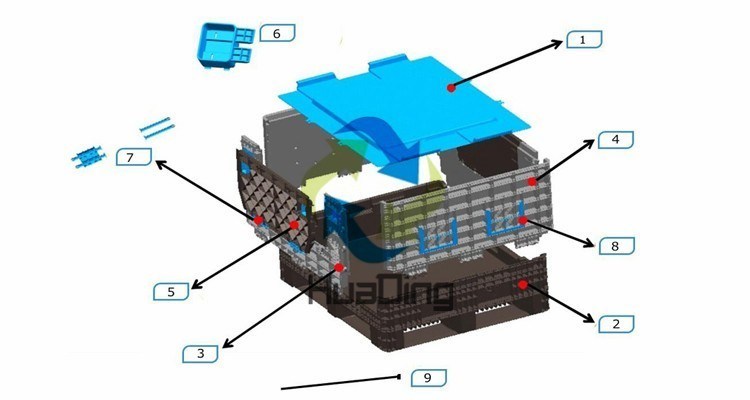 1) De levensduur is 10 keer langer dan die van houten blikjes 2) Ze zijn veel lichter dan houten en staalcontainers, dus ze zijn efficiënt in transport en opslag. 3) Recyclebaar en wasbaar 4) Certificaten: ISO 9001, ISO 14001, ISO/TS16949 en certificaat voor levensmiddelen |