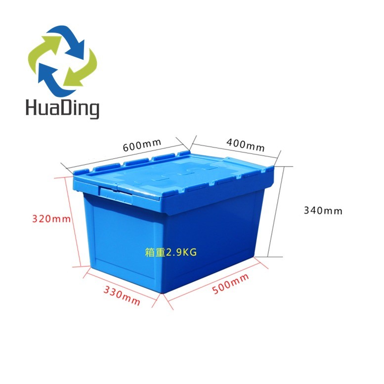 vergrendelbare plastic opslagdoos Vergrendelbare opslagdoos Plastic logistieke container met wielen bevestigd deksel stapelbakken warm verkochte plastic doos